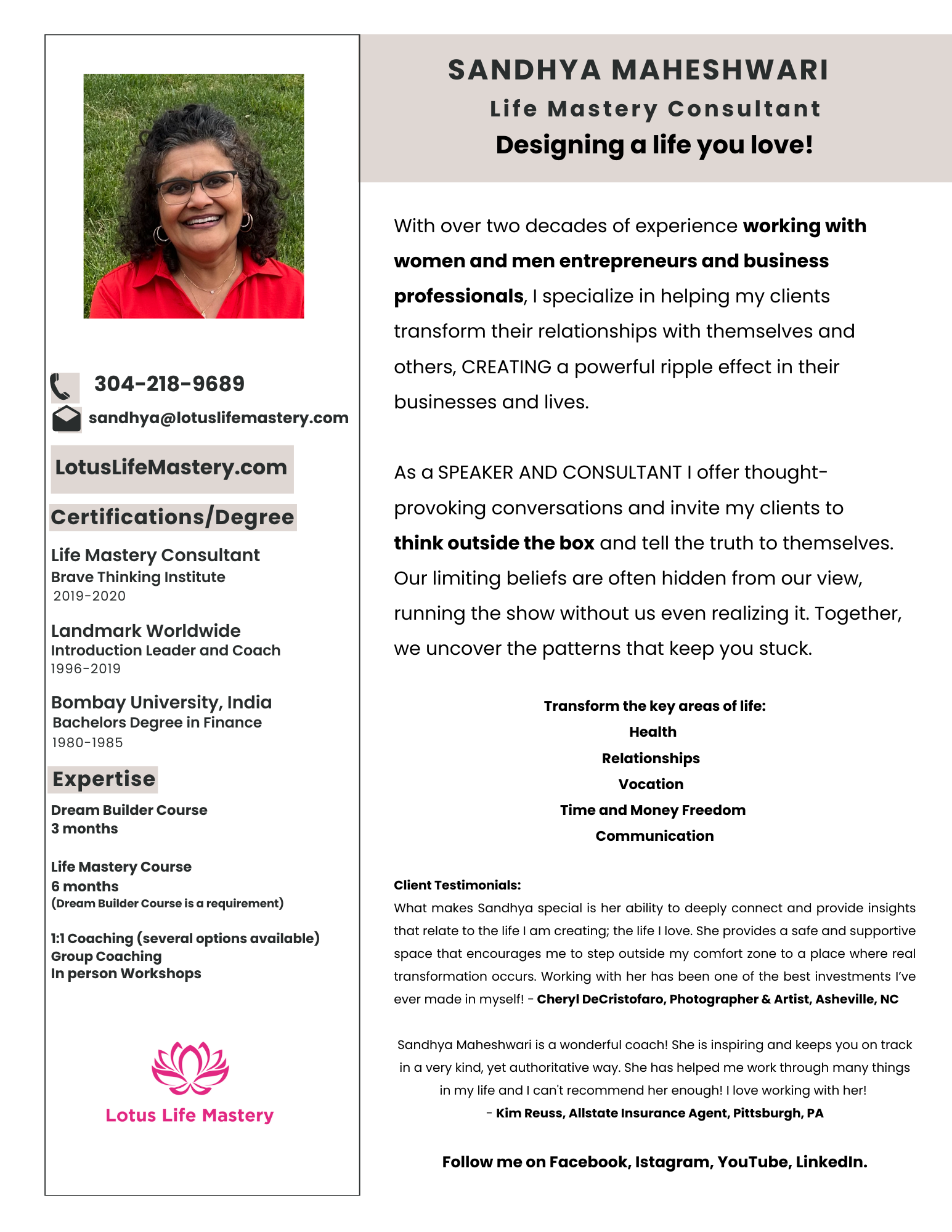 Every area of our life impacts all that we do in our life! It is important to be healthy to work and to serve and be in relationships, to have fun and to do work in the world that makes a difference. We are all juggling and seeking balance and harmony in our lives in all four domains: Health and Wellbeing, Love and Relationships, Our Vocation or Career, and Time and Money Freedom.